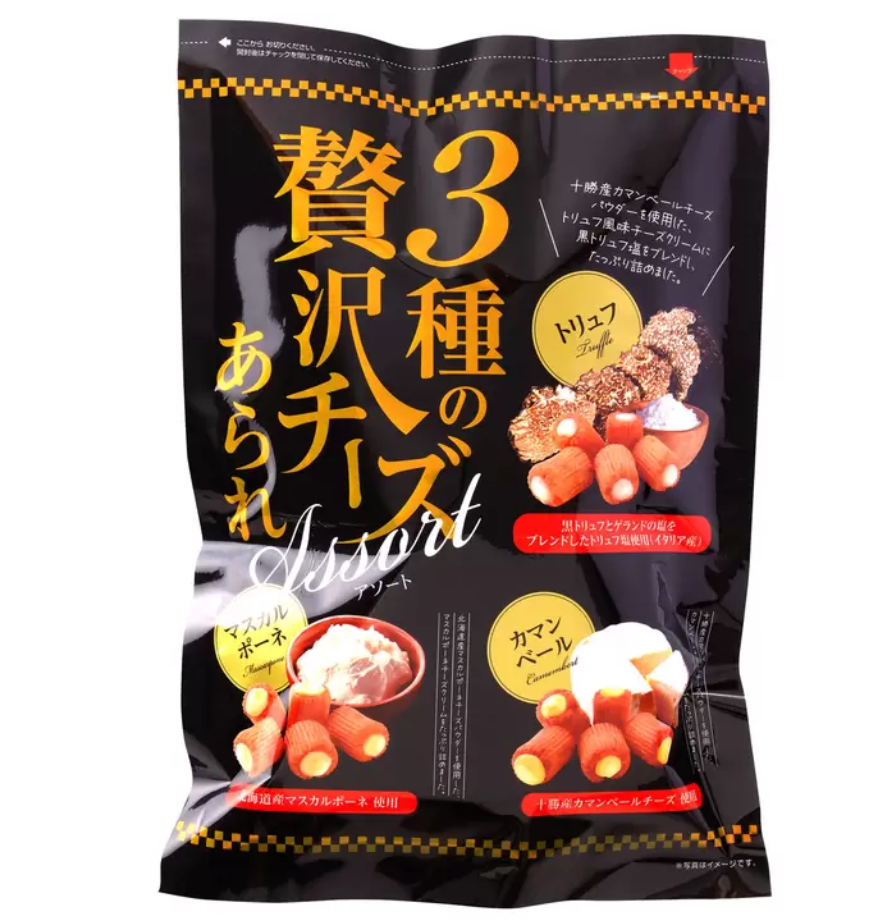 人気の北海道産カマンベールチーズあられとマスカルポーネチーズあられに加えて特製の黒トリュフ入り塩チーズクリームを使用したトリュフ味の3種類を贅沢なアソートに仕上げました。